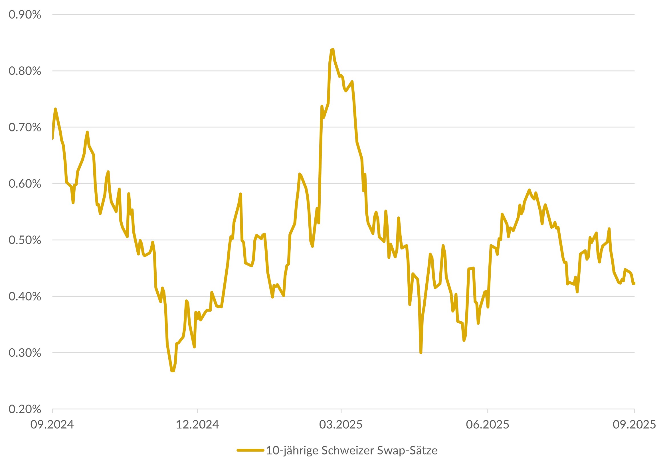 Wie erwartet wuchs die Schweizer Wirtschaft nach dem starken Jahresbeginn (+0,7 % im Q1) aufgrund von Vorzieheffekten (Vorverlagerung von Exporten und Investitionen aufgrund von Unsicherheiten und drohenden Veränderungen) im zweiten Quartal kaum mehr (+0,1 % im Q2). Die Unsicherheiten in Bezug auf die Handelspolitik sowie die verschiedenen geopolitischen Risiken haben einen negativen Effekt auf das Investitionsklima und belasten den Ausblick. Im zweiten Halbjahr wird daher nur mit einer schwachen Wirtschaftsdynamik gerechnet. Die Wachstumsprognosen für das Gesamtjahr 2025 belaufen sich derweil auf knapp über ein Prozent.