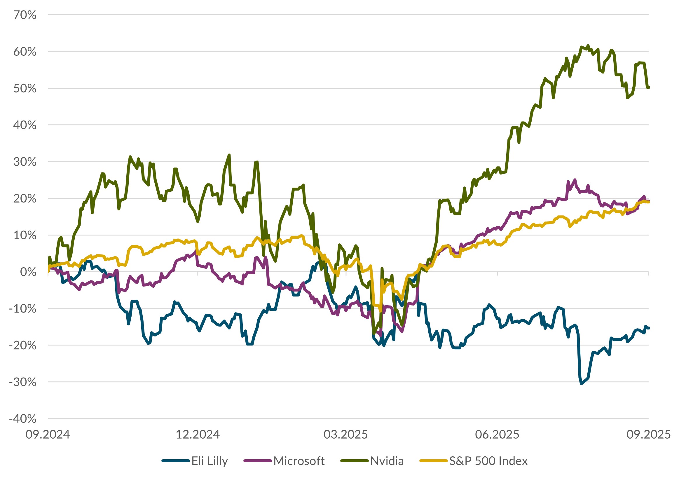 In seiner Rede auf der US-Notenbankkonferenz in Jackson Hole wies Fed-Chef Powell zwar auf die Risiken für den Arbeitsmarkt hin, betonte aber auch die Gefahr einer hartnäckigeren Inflation. Damit öffnete er die Tür für niedrigere Zinsen, ohne sich auf die nächste Sitzung festzulegen. Für Unruhe sorgten die fortwährenden Angriffe Donald Trumps auf die Fed. Insgesamt dürften sinkende Zinsen, steigende Unternehmensgewinne, Investitionen, der private Konsum und die Dynamik im KI-Sektor die Märkte positiv beeinflussen. Wir empfehlen die Titel Eli Lilly, Microsoft und Nvidia. (amm)