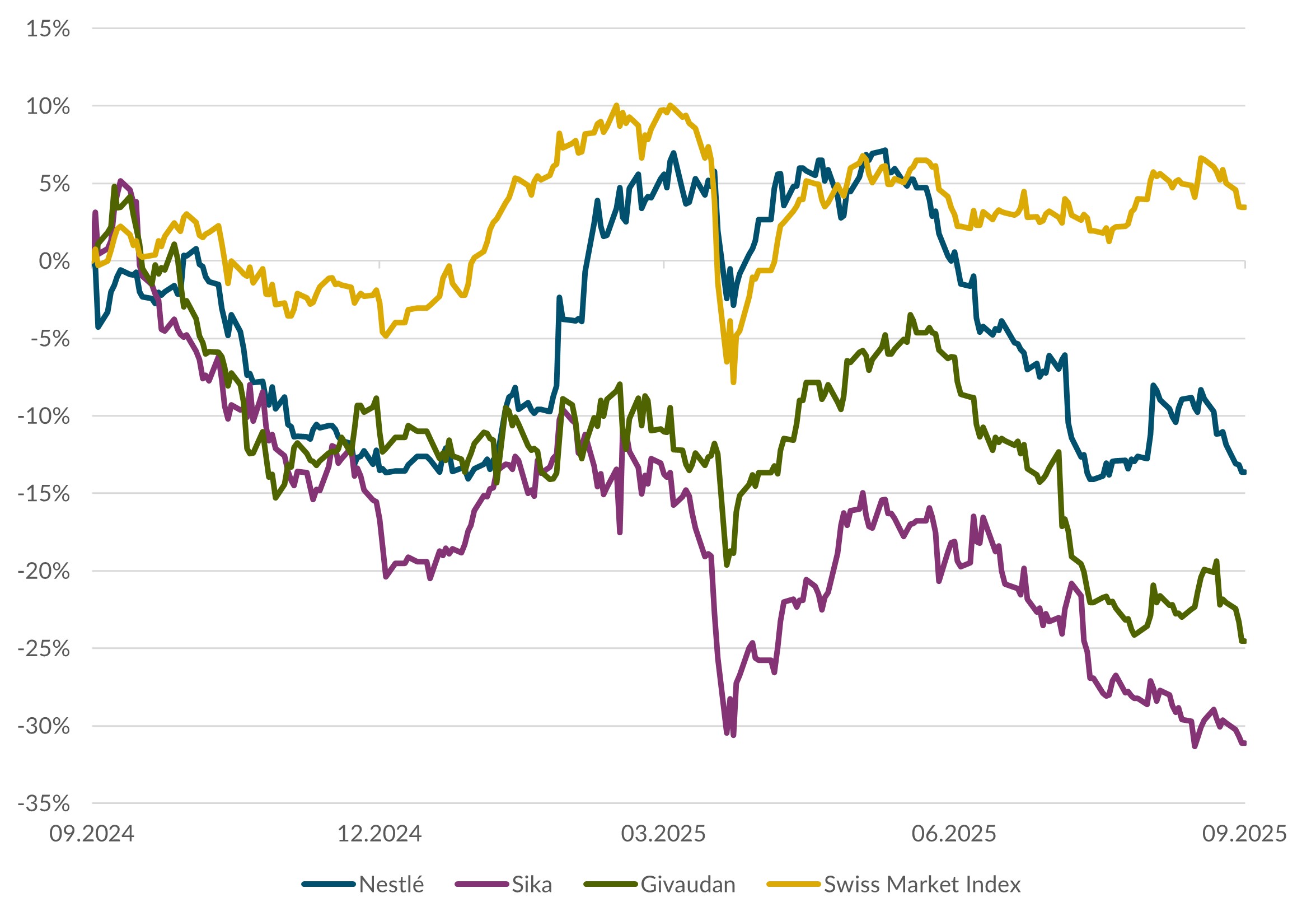 Der Schweizer Aktienmarkt schneidet im internationalen Vergleich erneut enttäuschend ab. Dies ist nicht etwa auf die US-Zölle in Höhe von 39 % zurückzuführen, sondern auf das schwache Abschneiden der beiden Index-Schwergewichte Roche und Nestlé. Nachdem Nestlé das Führungsduo ausgewechselt hat, erwarten wir rasch vertrauensbildende Massnahmen, welche zu einer kräftigen Kurserholung führen werden. Bei den grosskapitalisierten Unternehmen favorisieren wir Nestlé, Sika und Givaudan, bei den Nebenwerten setzen wir auf Bachem, Georg Fischer und VAT Group. (bae)