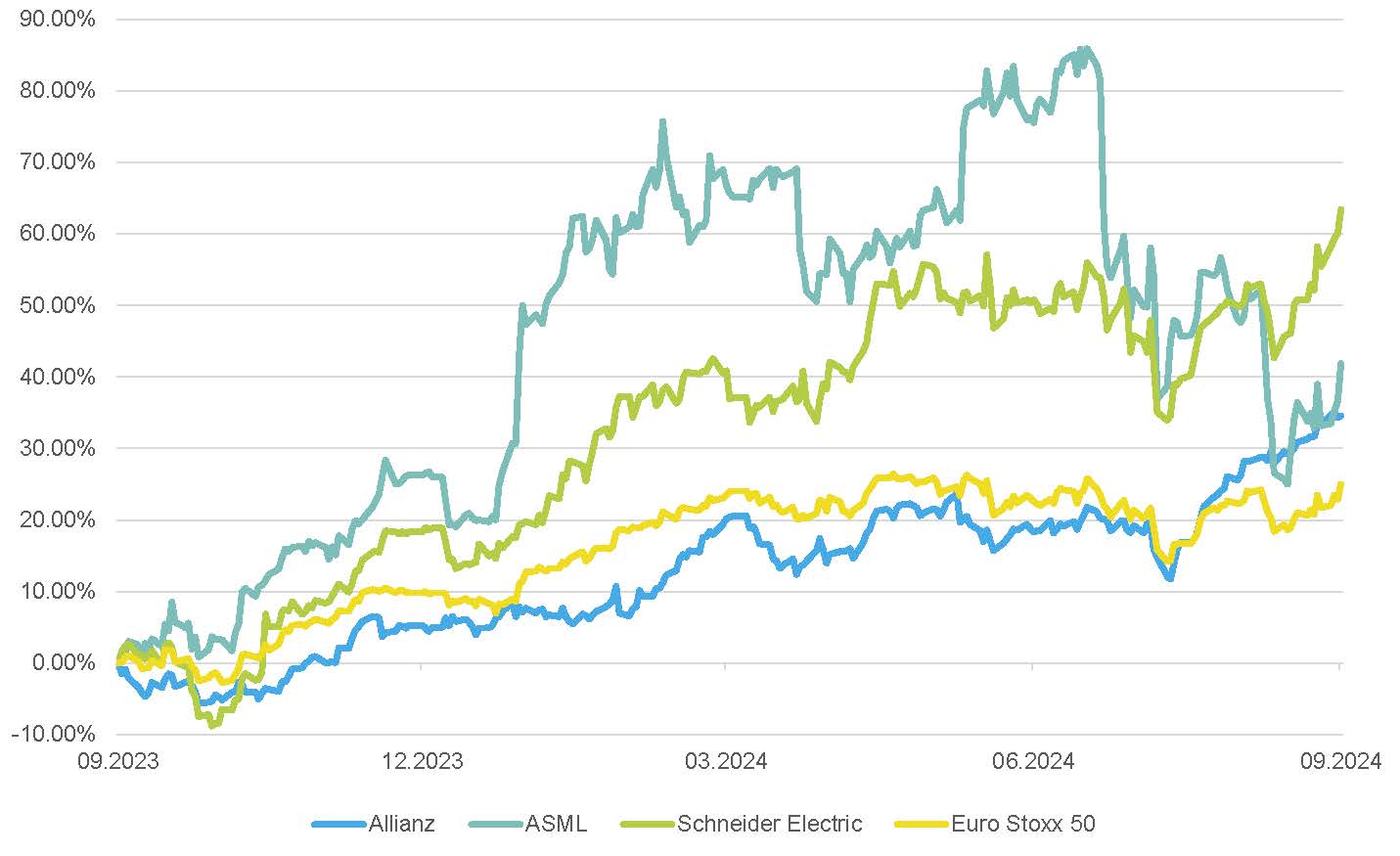 Die EZB senkte die Zinsen um 0,25%, gab aber keinen Ausblick auf die weitere Zinsentwicklung. In Erwartung weiterer Zinssenkungen in den kommenden Monaten gehen wir von Mittelzuflüssen in die Aktienmärkte und einer entsprechend positiven Marktentwicklung aus. Unser Fokus liegt auf zyklischen und zinssensitiven Werten sowie auf Qualitätstiteln. Bei Anlagen in Europa ist es wichtig, sektor- und länderspezifische Risiken zu berücksichtigen. Unsere Empfehlungen für Europa sind Allianz, ASML und Schneider Electric. (wan)