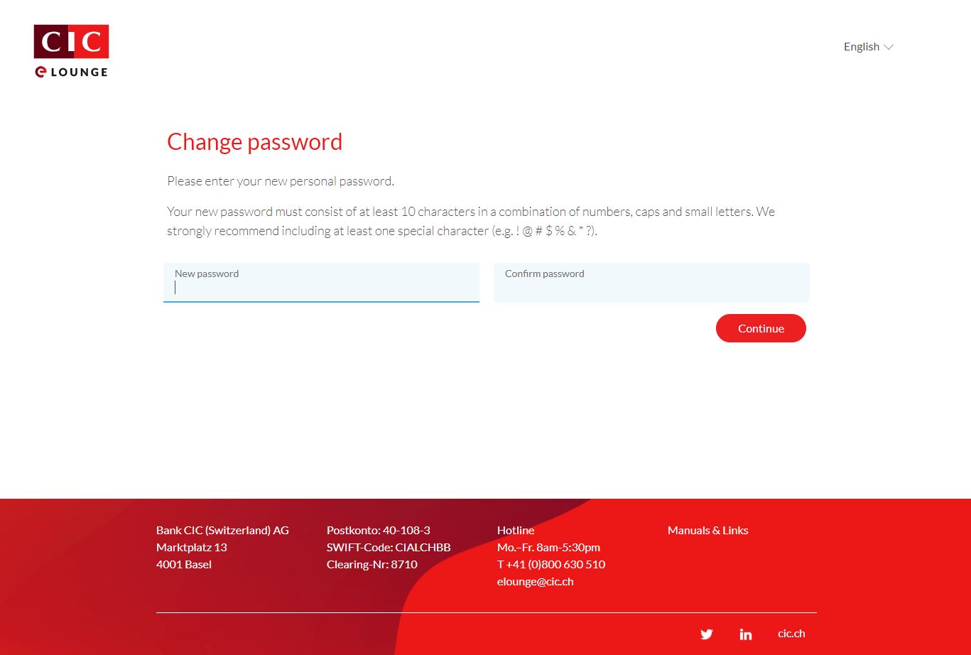 If you have not received an SMS, please contact the CIC eLounge Hotline on +41 (0)58 268 16 30. The hotline is available Monday to Friday from 8 a.m. to 5:30 p.m. (apart from public holidays).